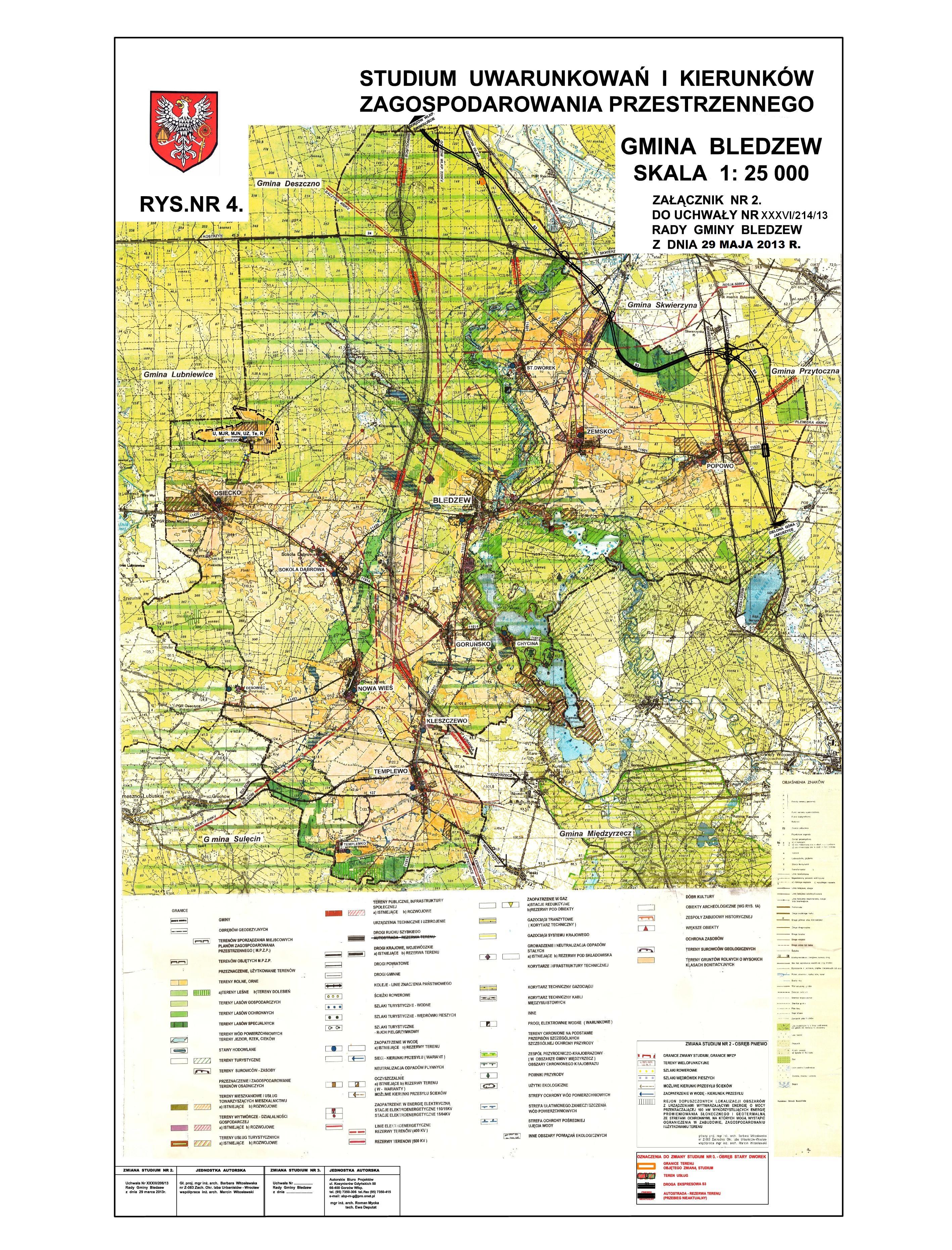 Uchwała Nr XXXVI/214/13 - uchwalenie zmiany studium uwarunkowań i kierunków zagospodarowania przestrzennego gminy Bledzew w obrębie Stary Dworek