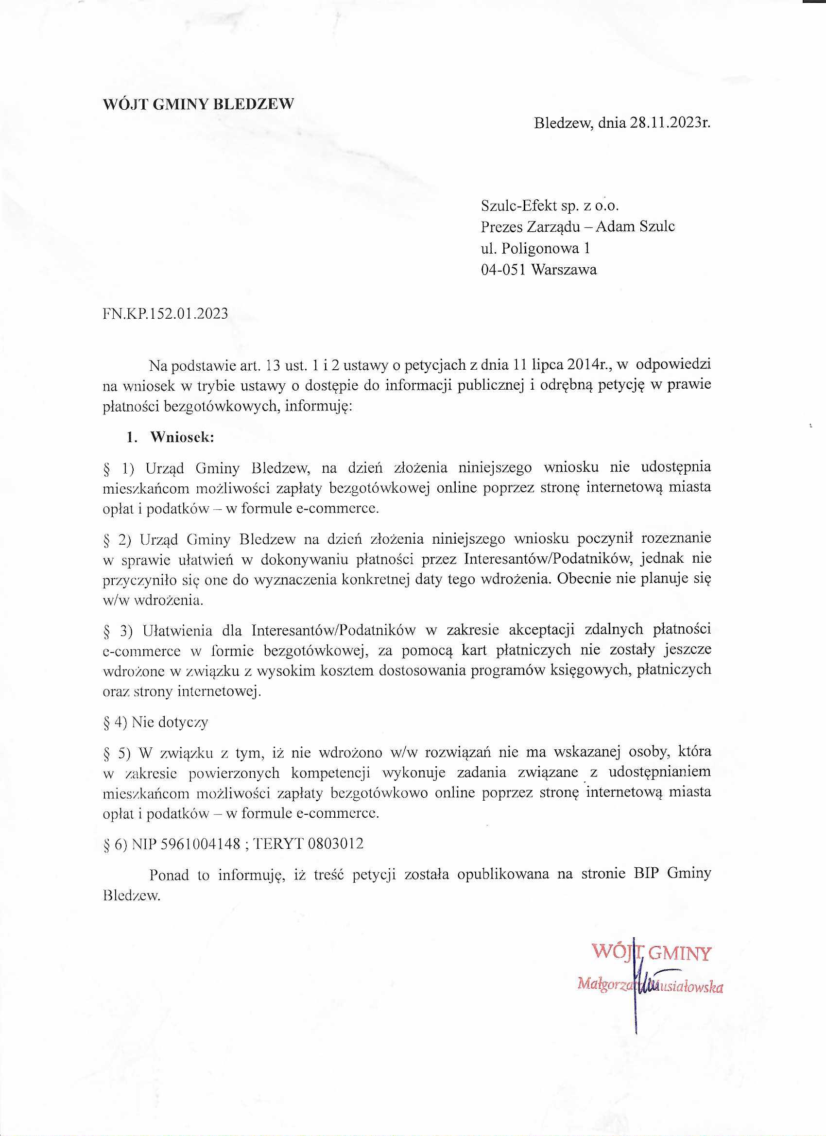 ![]() | Odpowiedż na petycję (wprowadził: Natalia Pigłowska ) rozmiar pliku: 302.9Kb | ||